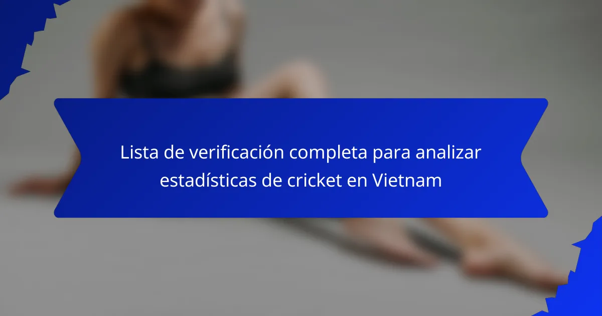 Analizar las estadísticas de cricket en Vietnam requiere un enfoque en métricas clave como los resultados de los partidos, el rendimiento de los jugadores y las clasificaciones de los equipos. Al utilizar fuentes confiables y herramientas analíticas avanzadas, los entusiastas pueden obtener valiosos conocimientos sobre el juego. Esta lista de verificación integral te guiará a través de los aspectos esenciales de la recopilación y análisis de datos para mejorar tu comprensión del cricket en la región.