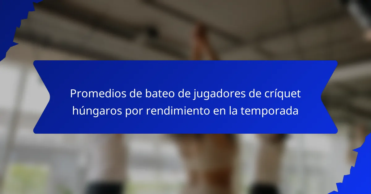 Mejorar los promedios de bateo de los jugadores de cricket húngaros implica un entrenamiento enfocado, una nutrición adecuada y estrategias de acondicionamiento físico. Al perfeccionar habilidades específicas y mantener el bienestar físico, los jugadores pueden mejorar su rendimiento en el campo.